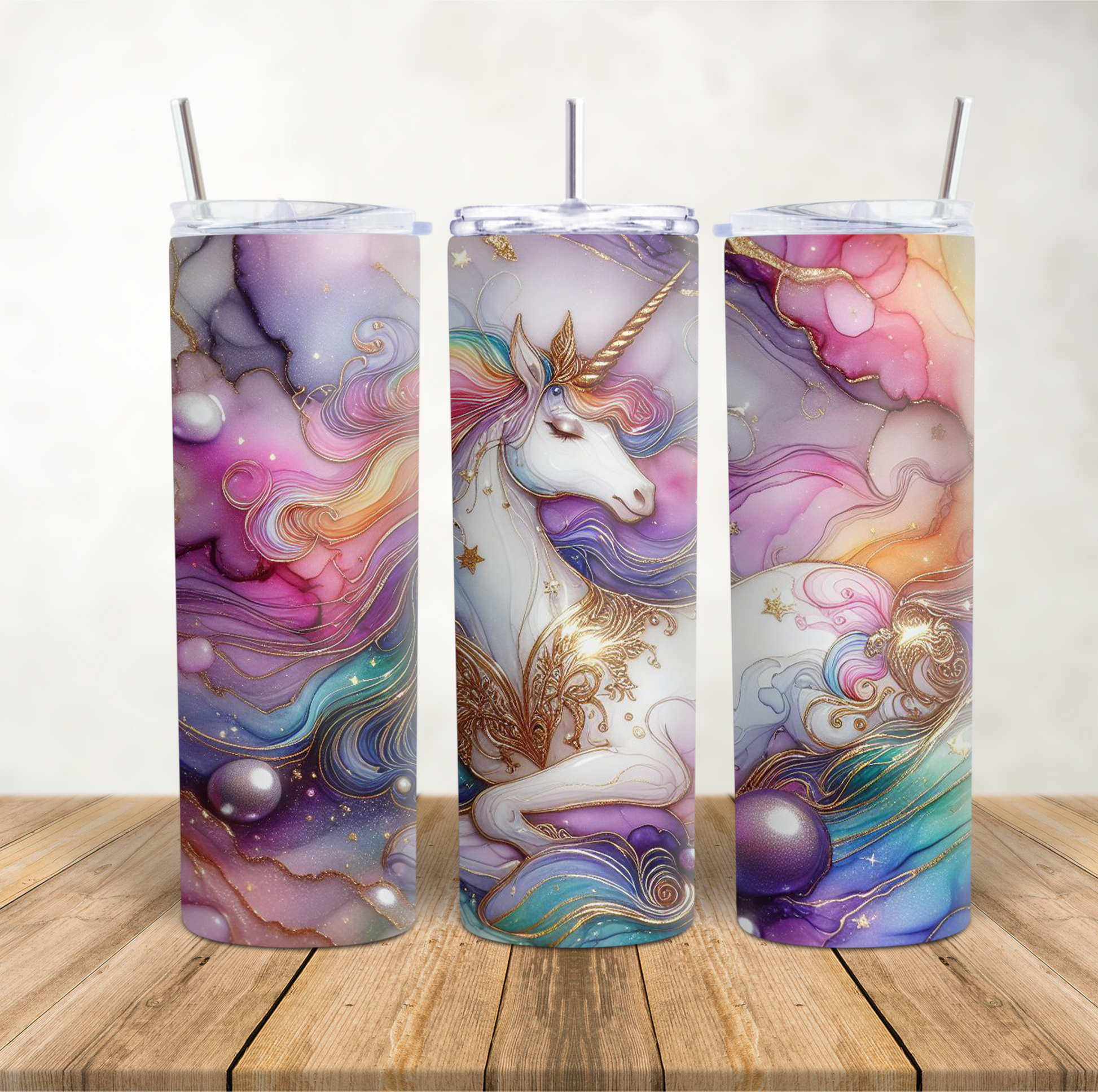 20oz Skinny Tumbler for hot & cold drinks gorgeous marbled unicorn