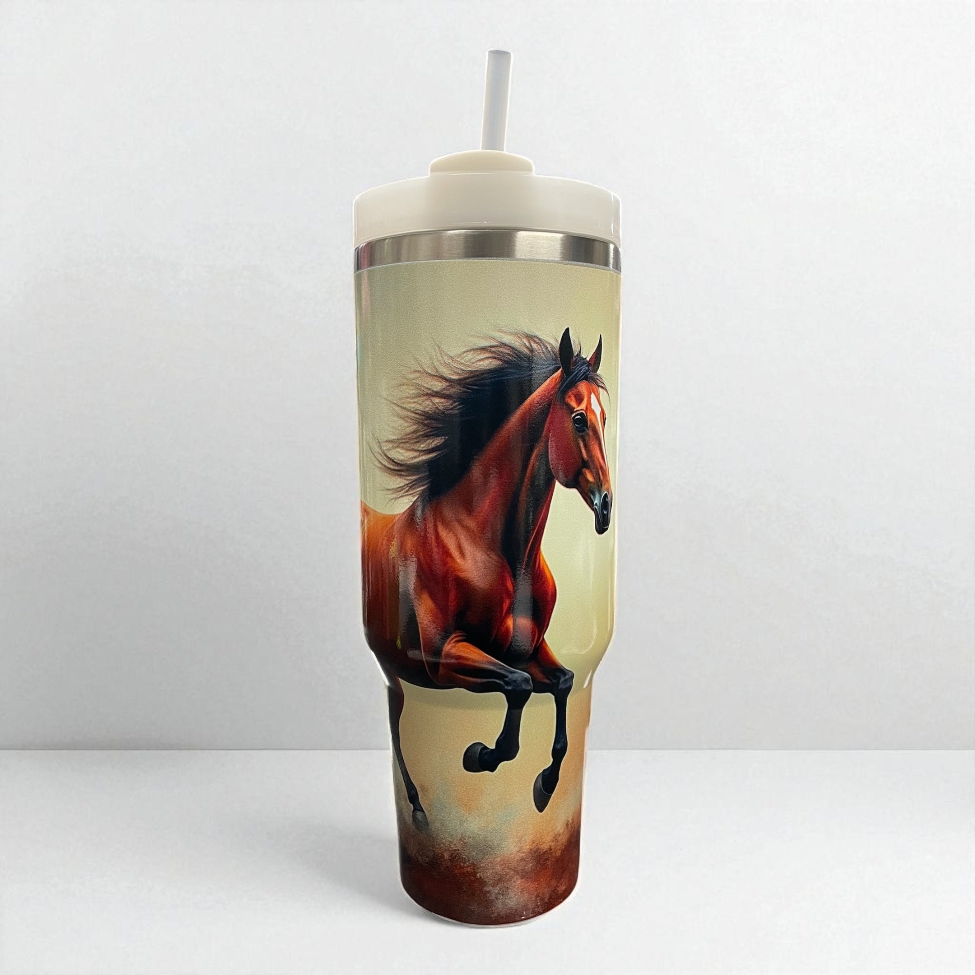 40oz Tumbler "Cantering Bay horse" large cup with handle & straw (201)