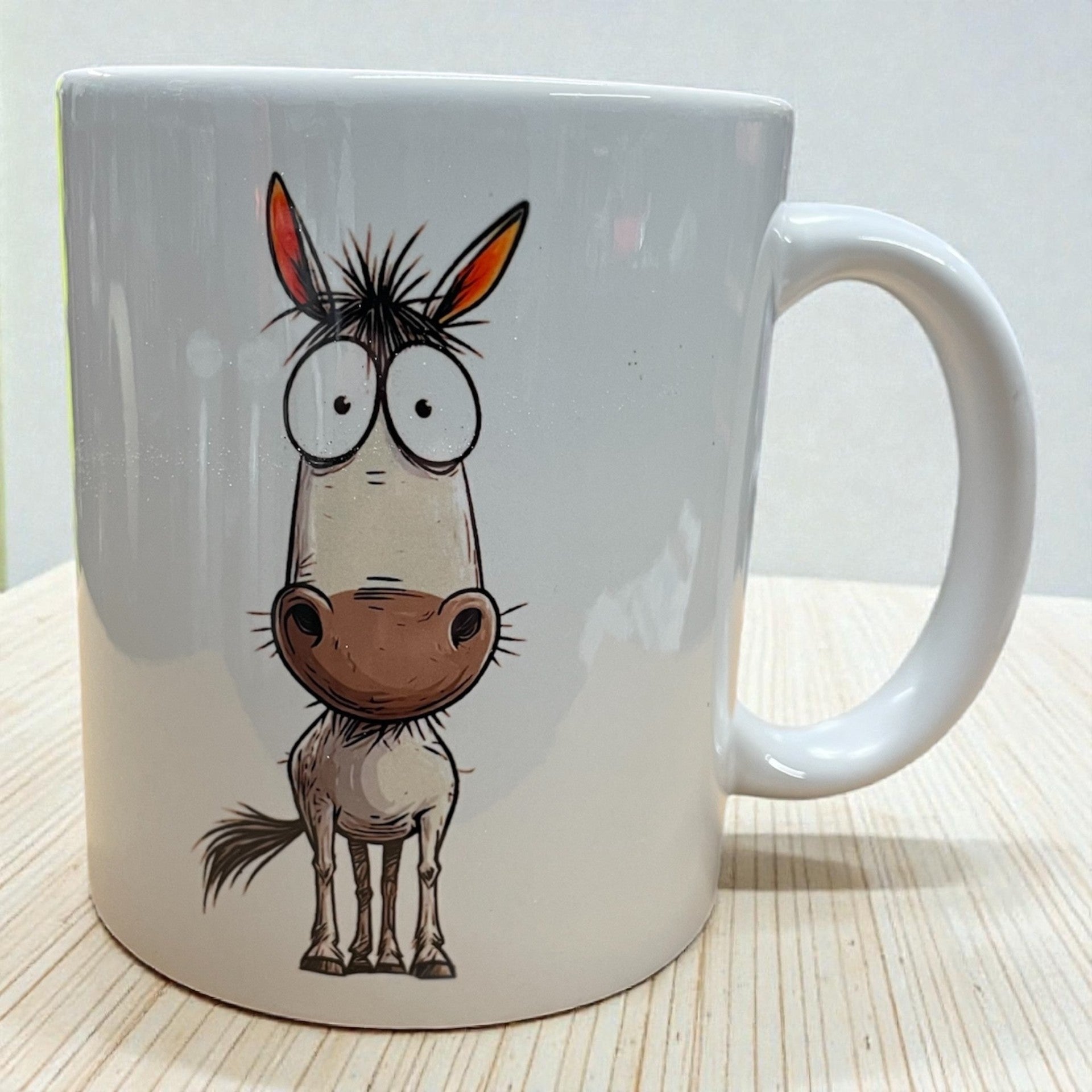 Equestrian theme ceramic mug 11oz cute ugly funny cartoon grey horse