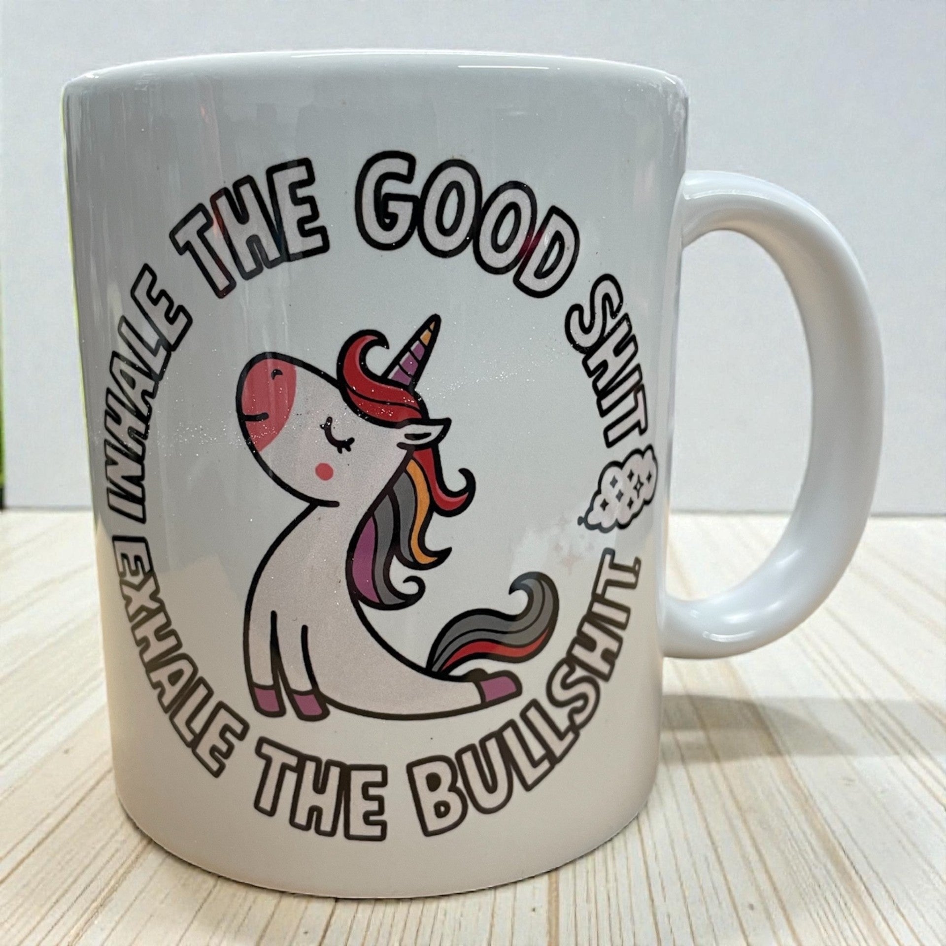 Funny rude swearing unicorn ceramic mug 11oz inhale the good sh*t exhale